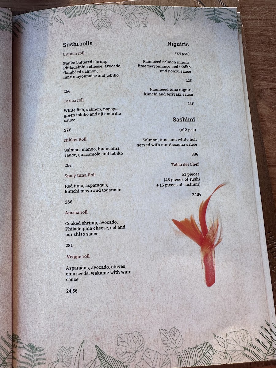 Anssia Gastrobeach Club Palma Menu